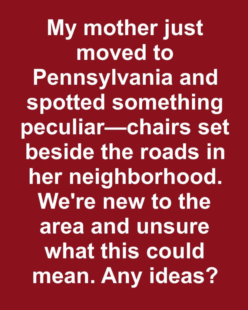 Not one to give up easily, my mother continued her quest for answers. It turns out that the practice of placing chairs by the roadside does have historical roots, especially in certain Pennsylvania towns.