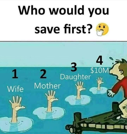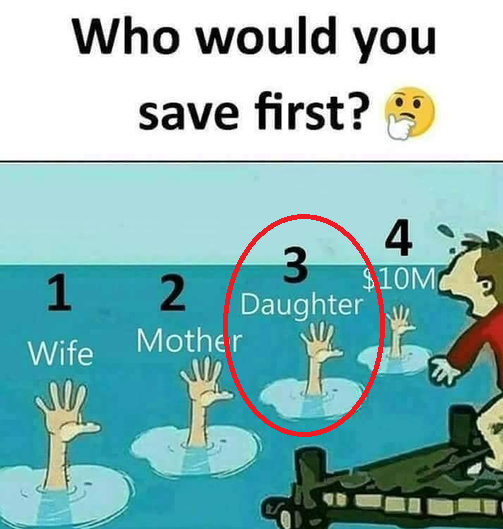 At first glance, the viral image showing a man choosing between saving his wife, mother, daughter, or $10 million might seem like just another internet meme. But let’s not be fooled—this image is loaded with deeper psychological traps and moral dilemmas that challenge our core values. So… who would you save?