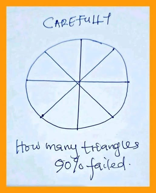 But that’s exactly where the trap is set. This puzzle doesn’t ask you to count the slices — it challenges you to actually count the triangles. And those are not the same thing.