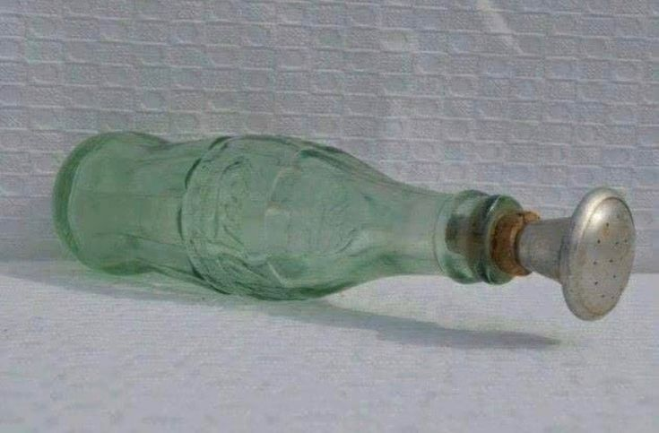 Imagine this: an empty glass Coca-Cola bottle, filled with water, with a small perforated sprinkler head screwed onto the top—usually made of metal or plastic. That’s it. This DIY sprinkler was used to moisten clothes before ironing.
