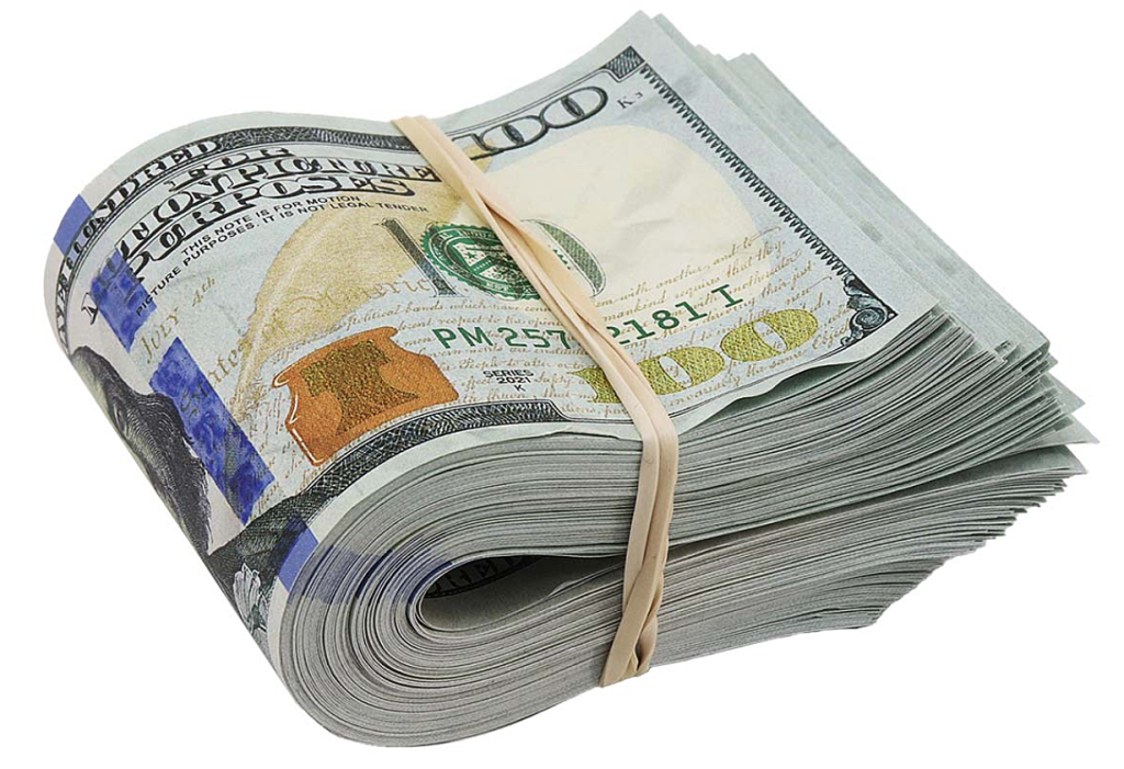 A great trick for large stacks of cash is to roll the bills into a cylinder and secure them with a rubber band. This method is often used by banks and money handlers to save space.