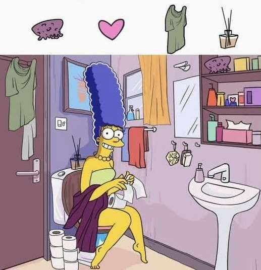 This one’s a bit of a trick. Behind Marge Simpson’s shoulder (yes, she’s front and center), there’s a clutter of bathroom items. Nestled between toiletries, barely sticking out, is the sleek scent diffuser. It almost disappears unless you’re really zoomed in.