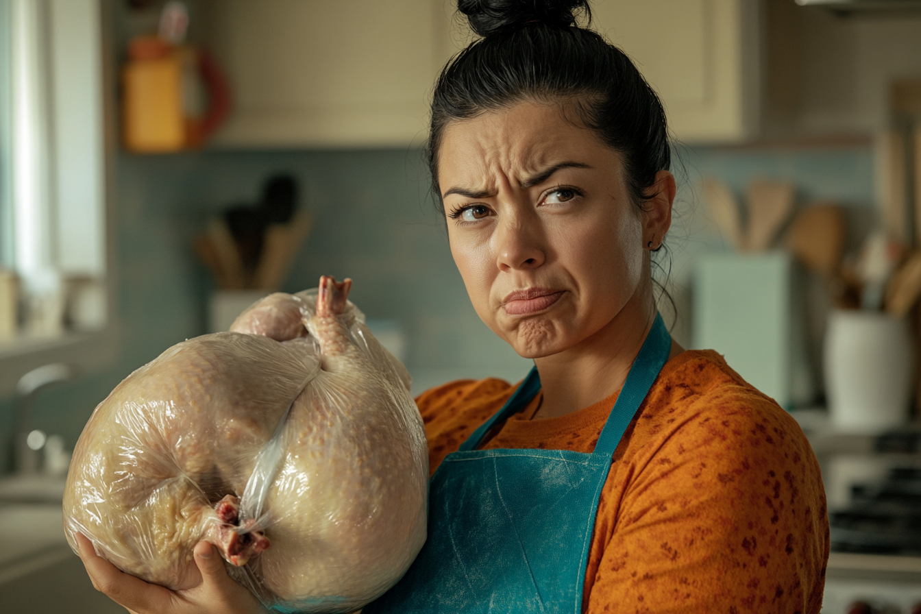 “Wait a second…” I whispered, my curiosity piqued. I wasn’t expecting anything strange. The turkey was pre-stuffed, so what could possibly be wrong?