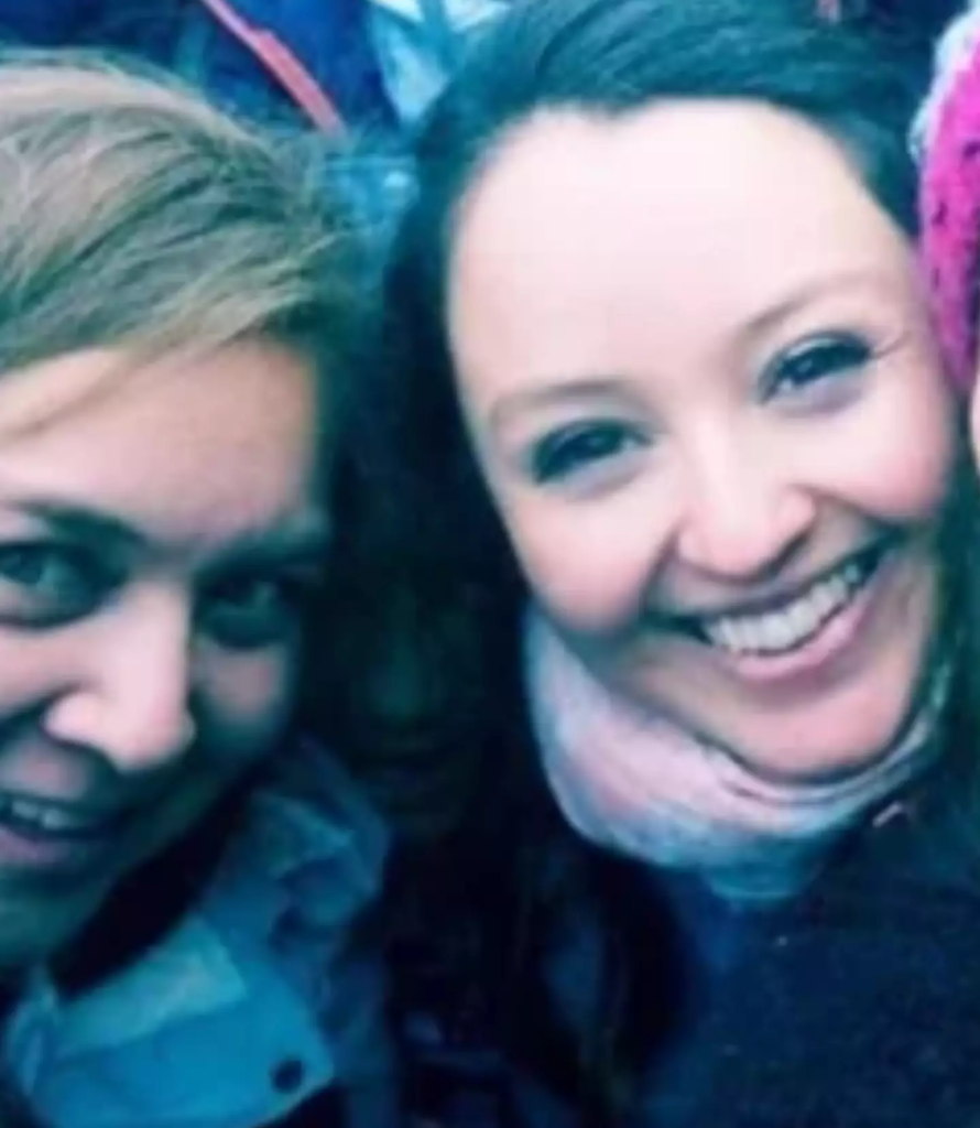 The hidden figure is positioned in the bottom left corner of the picture, between two of the women in the group. Unlike the rest of the smiling friends, this face is ghostly pale, half-obscured by shadows, and wears a neutral expression. The most unsettling part? The eyes, which seem to stare directly at the camera.