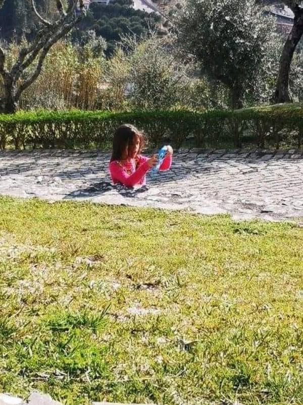 Because this wasn’t just any photo. At first glance, it looked like the girl was being swallowed by the pavement. Her entire lower half? Gone. Like a glitch in the Matrix or a child casually teleporting mid-driveway. And naturally, the internet went wild.