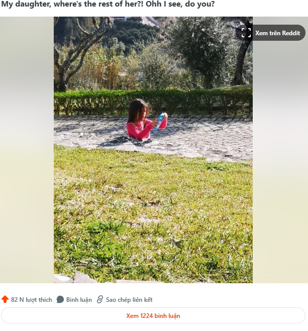The image, posted by the girl’s father, came with a playful caption: “My daughter, where’s the rest of her?! Ohh I see, do you?”