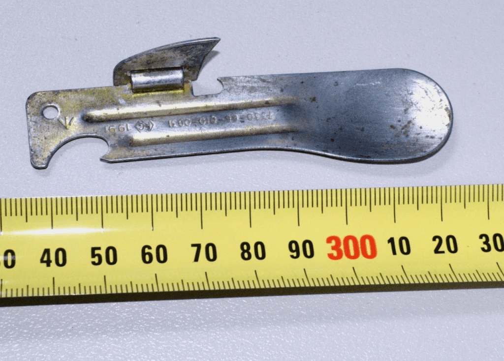 The P-38 can opener was first issued to American soldiers during World War II. At only 1.5 inches long, it was tiny enough to clip onto a keychain or dog tag. Despite its size, it packed an impressive punch. With a sharp folding tip and simple hinge, it could slice through thick metal cans in seconds.