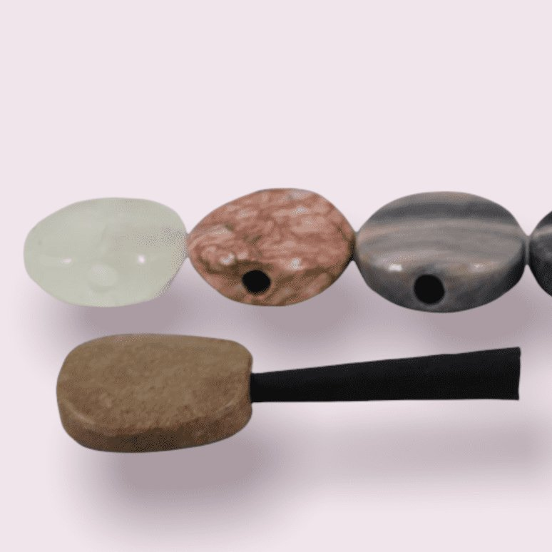 A toke stone, also called a roach stone or smoke stone, is a compact, smooth stone designed to make smoking more enjoyable and hassle-free. It features two strategically placed holes: a larger one to securely hold your joint or blunt and a smaller one for smoking. This clever design allows you to smoke all the way down to the roach without burning your lips or fumbling with makeshift tools like paperclips or tweezers.