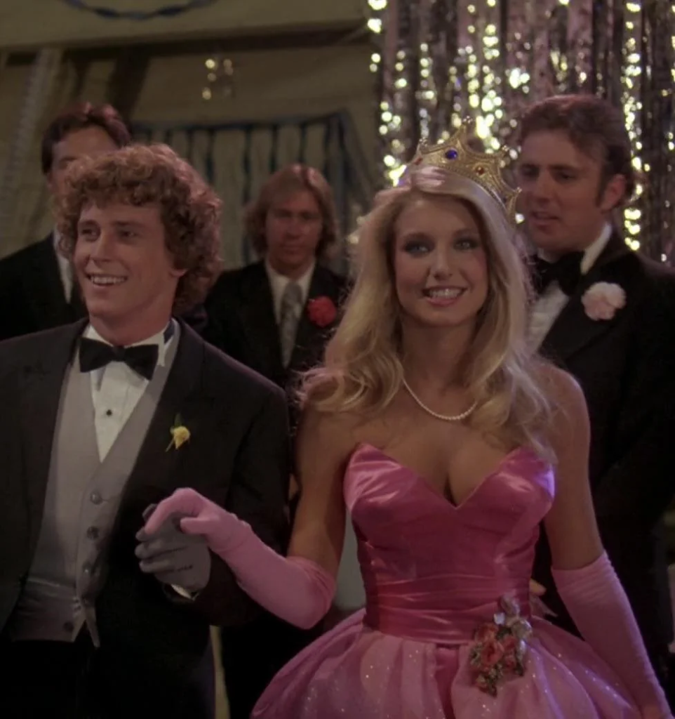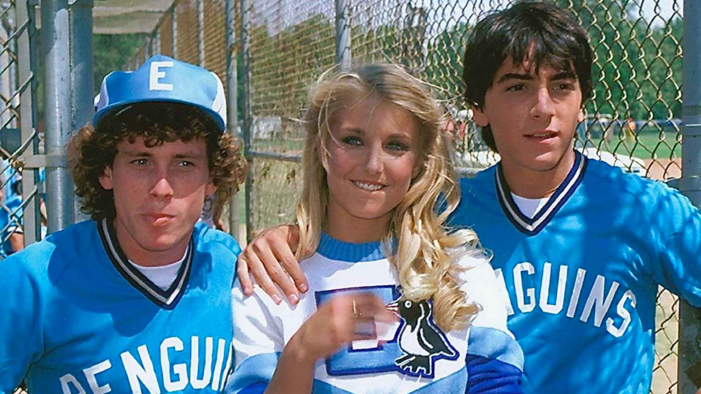 Then comes Jane Mitchell (Heather Thomas), the beautiful and popular girl at school. With her signature confidence, she strides past the boys, her blonde hair shining under the sunlight. Dressed in a soft sweater and a flowing skirt, she looks completely unaware of the embarrassing chaos about to unfold.