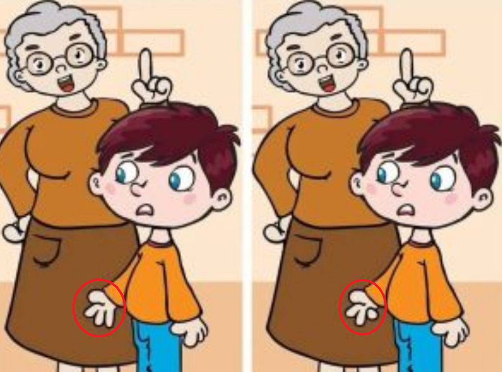 Here’s the answer: the difference lies in the grandson’s hands. In one image, his hands are subtly positioned differently compared to the other. It’s a small but noticeable detail that challenges your observational skills and makes you appreciate the artistry behind such puzzles.