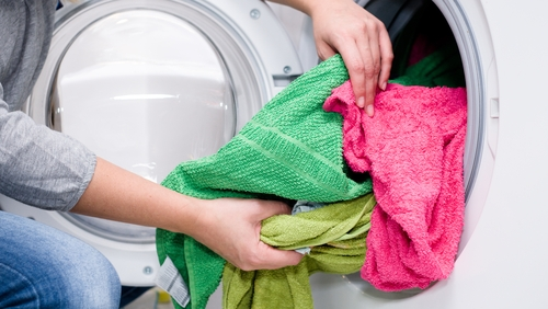 To prevent color bleeding, wash dark or brightly colored clothes separately from whites or light fabrics.