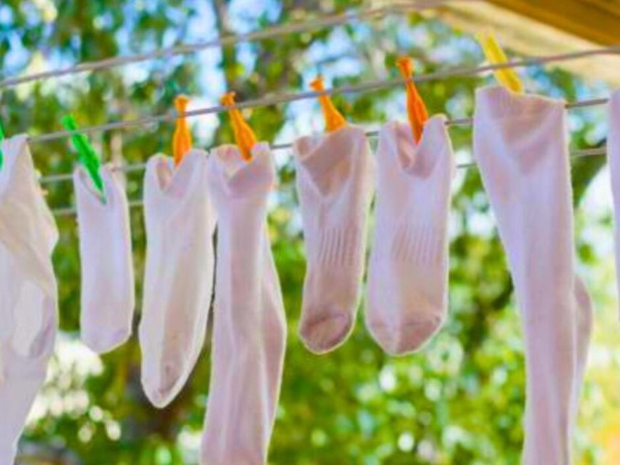 Hang your socks to dry in direct sunlight. The sun acts as a natural whitener and sanitizer, enhancing their brightness further.