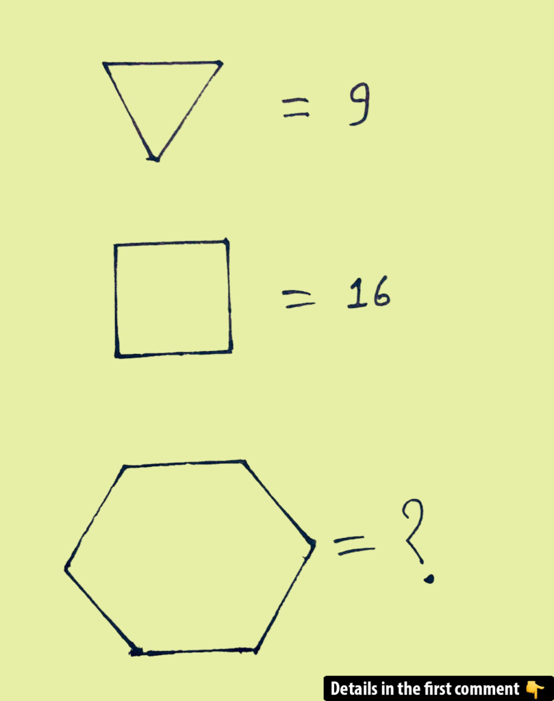 This puzzle plays on the mathematical concept of squaring numbers. The creators used familiar shapes with a clear number of sides to make it more visually engaging. However, the real trick is recognizing that the numbers aren’t random—they’re calculated using a simple formula.