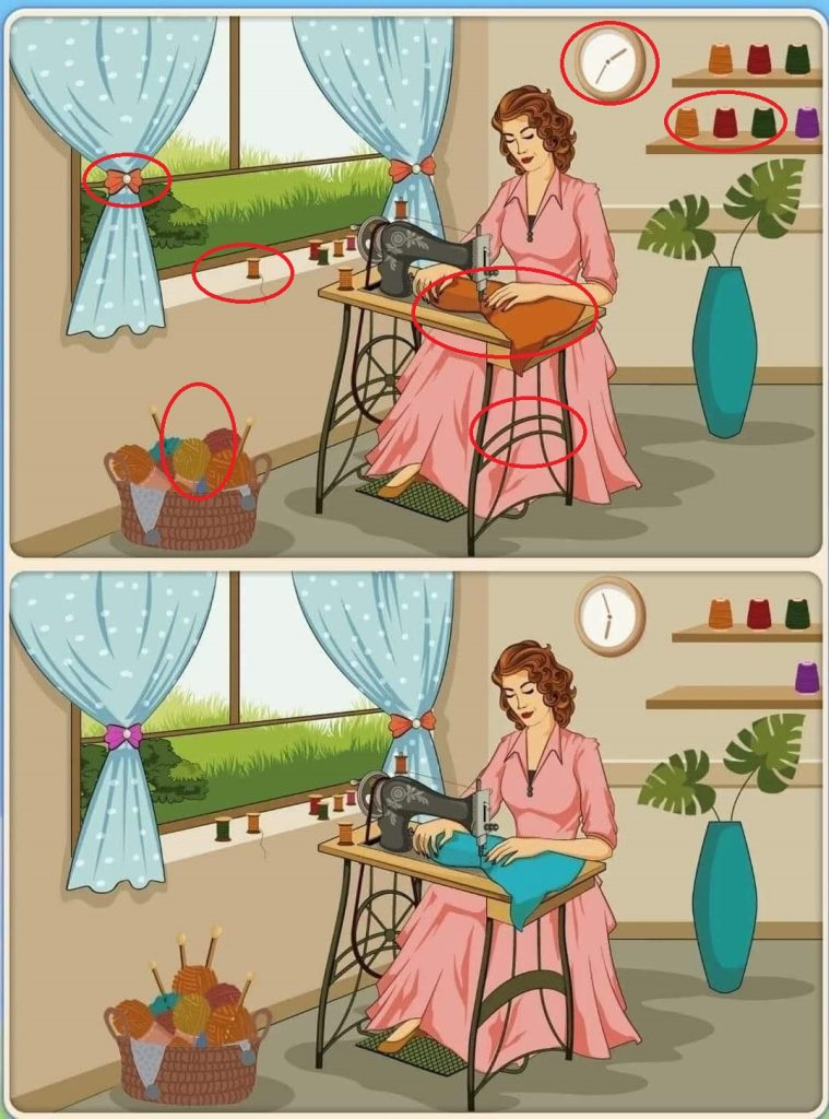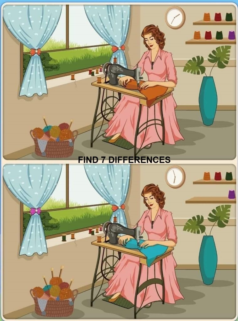 “Spot the Difference” puzzles aren’t just for killing time—they’re fun, engaging brain workouts that help you stay mentally sharp. This particular one with the woman sewing by the window might look calm and peaceful, but beneath the surface lies a clever test of observation.