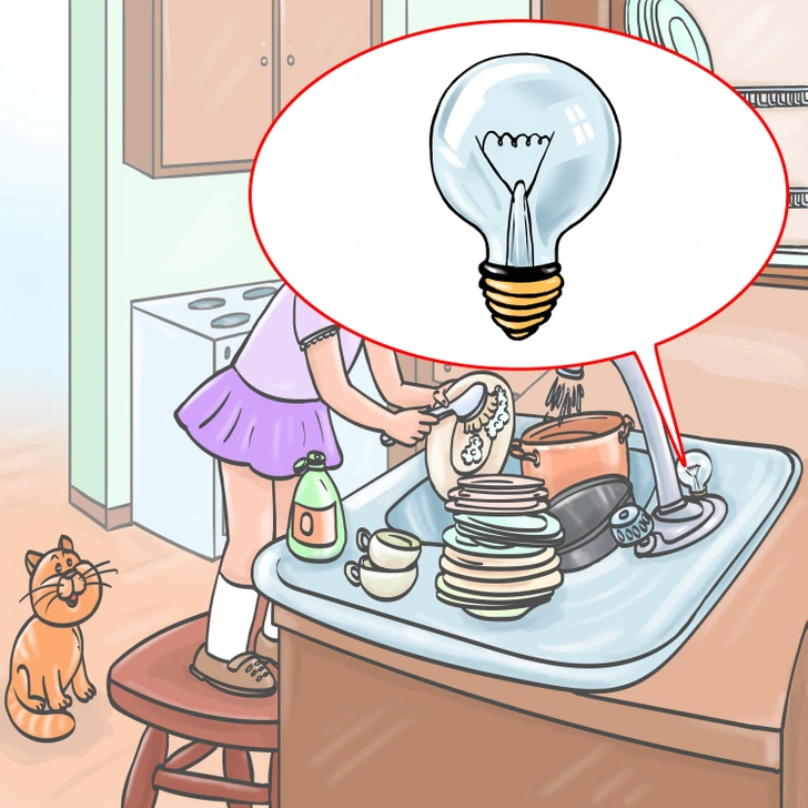 Next up is an image of a girl washing dishes. At first glance, everything looks normal, but a closer look reveals something strange.