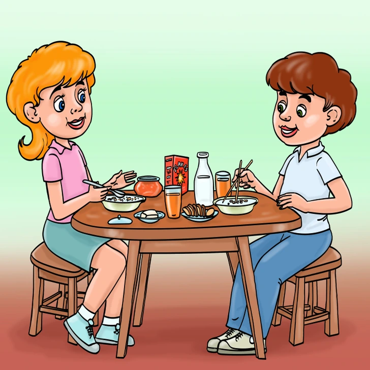 Two kids are enjoying breakfast together, chatting happily. Everything looks perfect for a morning meal, but is it?