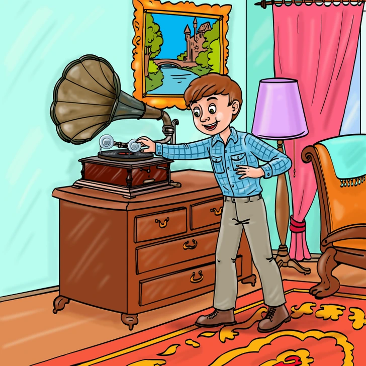 A boy is playing with a record player, listening to some old tunes. But something doesn’t seem right about this scene.