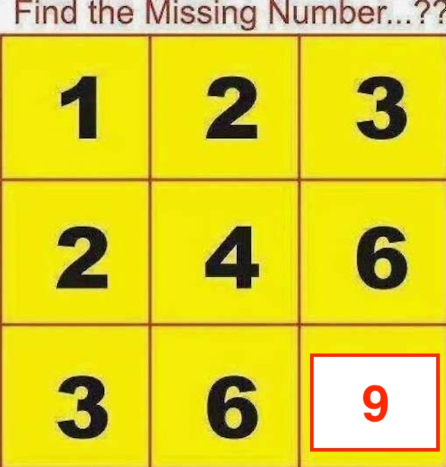 That’s it! The missing number is 9.