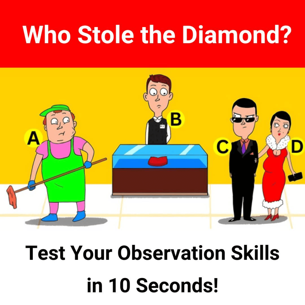 The mystery of the missing diamond is just one example of how puzzles can spark curiosity and challenge your mind. By analyzing every detail, avoiding assumptions, and staying focused, you can solve even the trickiest mysteries. Whether you solved this one or not, the important thing is to keep practicing and sharpening your skills.