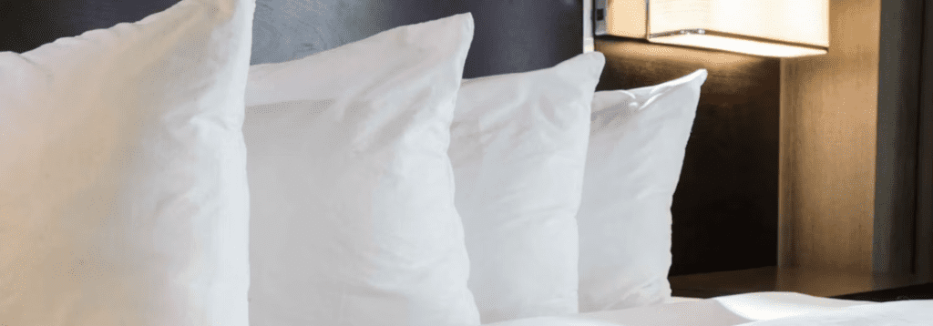 Typically, the two larger pillows on a hotel bed are designed to be firmer and provide significant support for the spine and neck. This is especially beneficial for those who struggle with back or neck pain, as these pillows help maintain alignment, ensuring that guests don’t wake up with aches and pains.