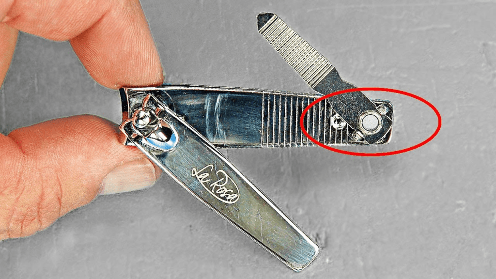 - The Metal Pick Trick: Many nail clippers come with a small metal pick attached alongside the round hole. While it’s primarily designed for cleaning under nails, this little metal piece can also act as a mini screwdriver.