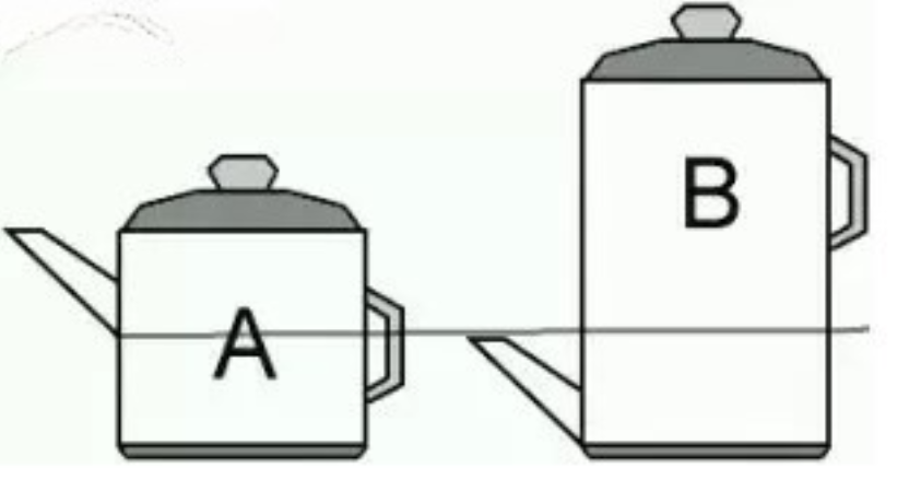 - By drawing an imaginary horizontal line from the spout opening of Teapot B to Teapot A, you can see that Teapot B effectively holds half the volume of Teapot A before reaching the same spill level.