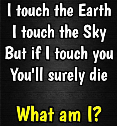 The key to solving this riddle is the last line: “If I touch you, you’ll surely die.” This tells us that whatever we’re looking for is extremely dangerous to humans. Many people ignore this crucial clue and guess something harmless.