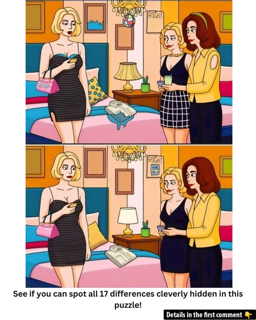 Alright, think you’ve got a good eye for detail? Here’s your chance to put it to the test. We’ve got a party scene—two seemingly identical images—but there’s a catch. Seventeen subtle changes are hidden throughout the scene, from background décor to sneaky outfit tweaks. Most people miss a few on their first try. Will you be one of the rare few who catches them all?