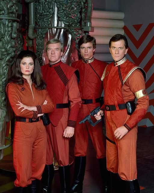 The iconic sci-fi mini-series V: The Final Battle (1984) was more than just a continuation of its groundbreaking predecessor—it was a masterpiece packed with tension, drama, and shocking revelations. Among its many memorable moments, there is one image that perfectly encapsulates the essence of this series, featuring Diana, the cunning and charismatic Visitor, flanked by her loyal officers. This unedited scene from the series holds a story of unexpected twists and hidden layers, challenging viewers to see beyond the surface.