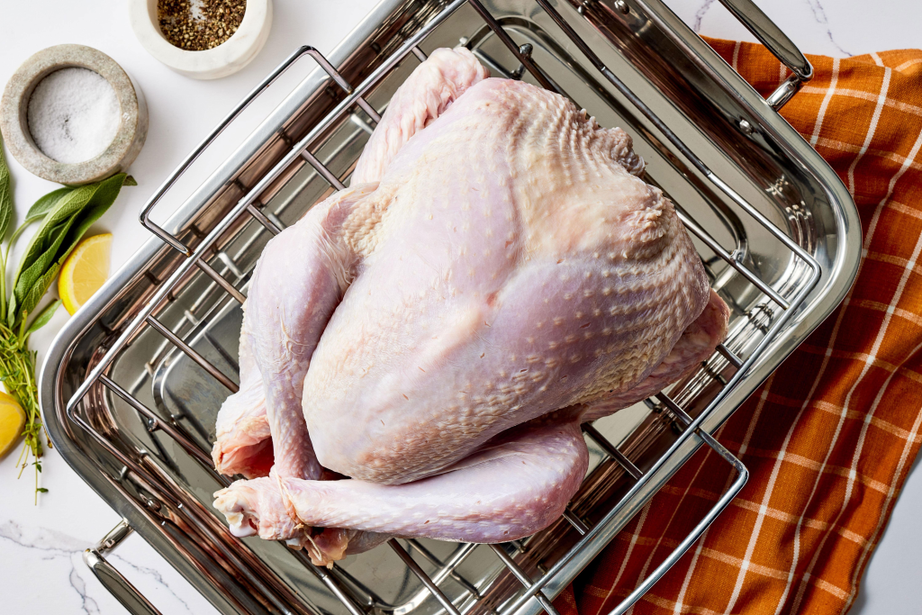 - Pro tip: Put the bird in a tray or pan to catch any drips—nobody wants raw turkey juice in their fridge.