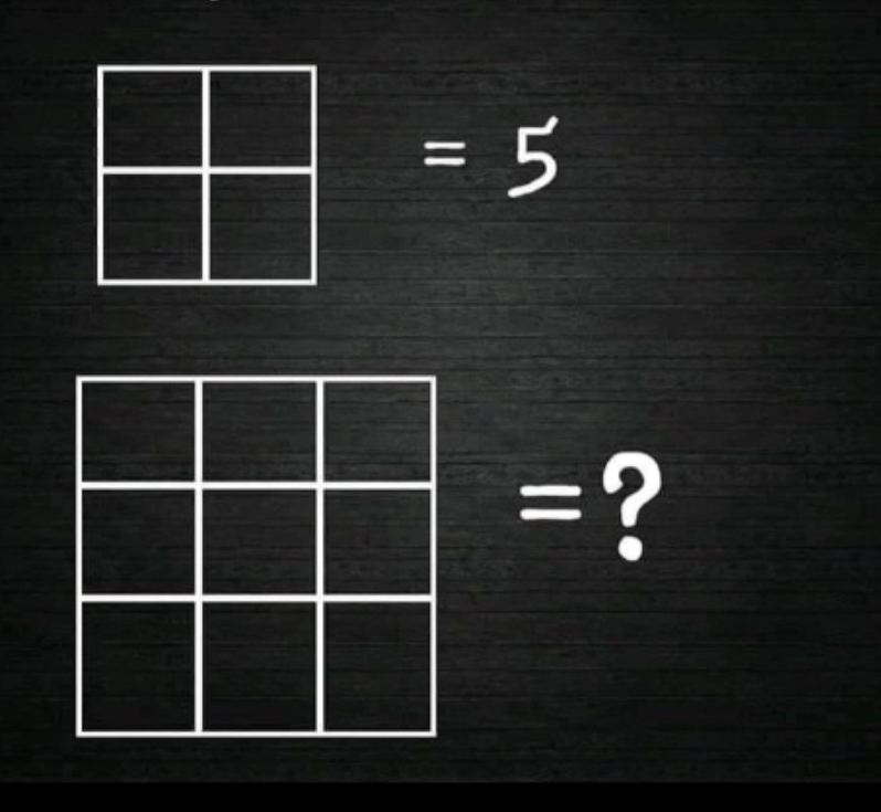 The puzzle starts with a 2×2 grid, and the equation states it equals 5. This is the critical first clue. The trick here is to see not only the obvious squares within the grid but also the larger square formed by the grid itself. Here’s how: