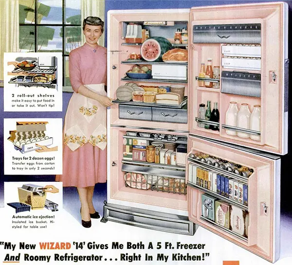 By the late 1950s, refrigerators had become so common that not having one seemed odd. That’s how quickly things changed — from occasional luxury to must-have essential in just a couple of decades.