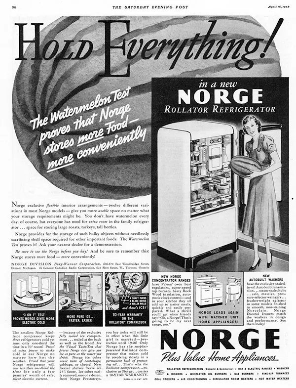 These ads weren’t just about appliances. They sold lifestyle. They tied refrigeration to progress, prosperity, and the idea of a better future.