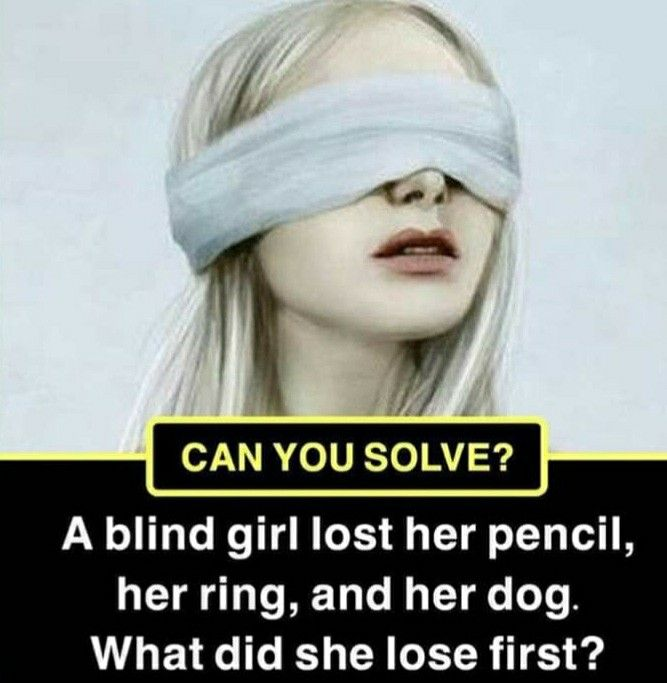 “A blind girl lost her pencil, her ring, and her dog. What did she lose first?”