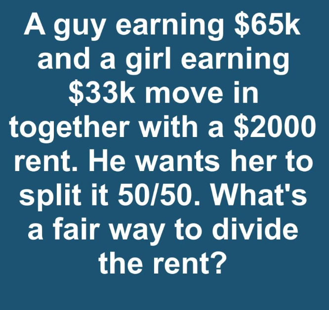 In this scenario, one partner earns $65,000 annually, while the other makes $33,000. Their shared rent is $2,000 per month. A 50/50 split may seem logical, but is it fair? Let’s explore different ways to distribute rent expenses equitably.