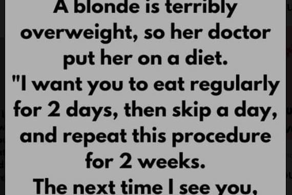 A blonde woman, concerned about her weight, visited her doctor for advice. The doctor prescribed a simple plan: “Eat normally for two days, then skip a day. Repeat this cycle for two weeks, and I guarantee you’ll lose at least five pounds.”