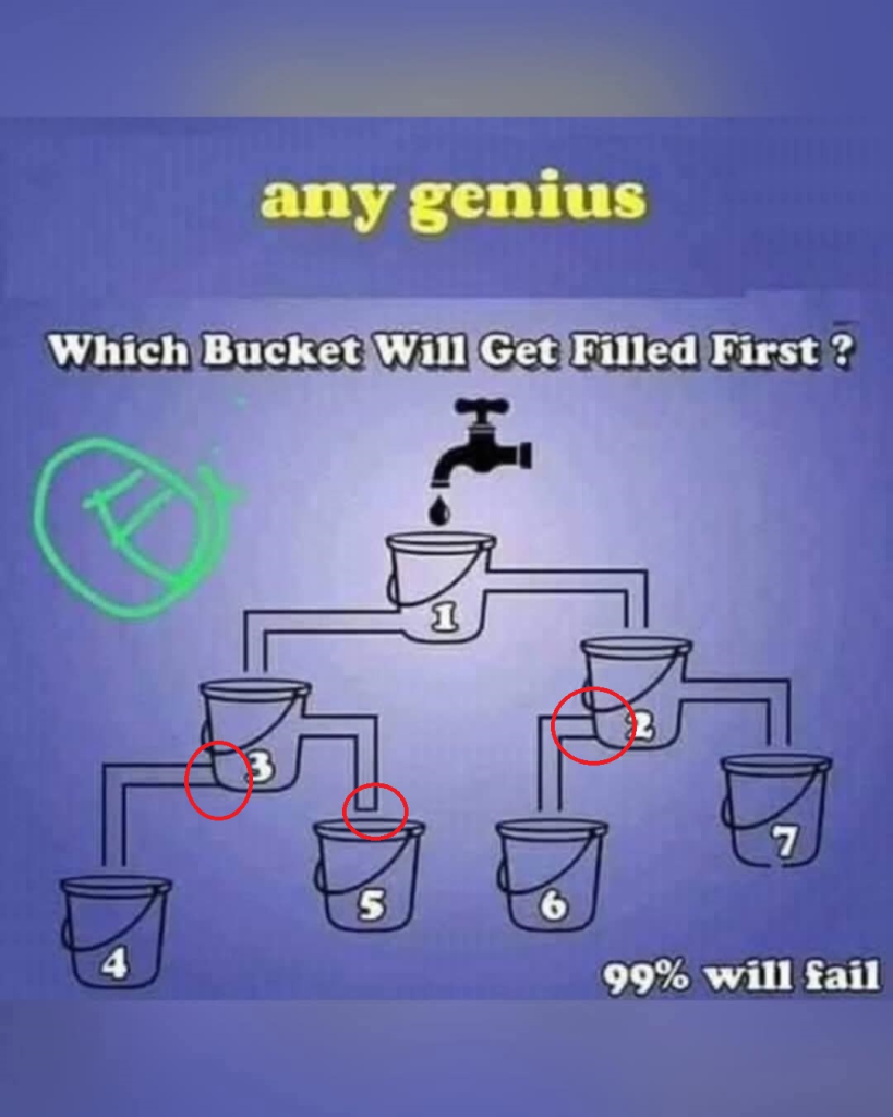 So when you follow the logic and not your gut, the answer becomes crystal clear: Bucket 3 fills up first.