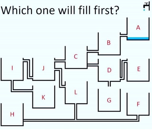 Did you get it right, or did you fall into one of the common traps? Many people assume the first container below the water source will fill first, but as this puzzle proves, small details can completely change the outcome.