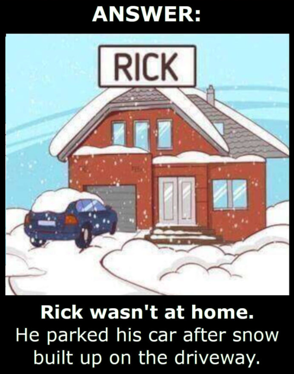 So, who’s the thief? The answer is Rick, the suspect with the undisturbed driveway. His alibi doesn’t hold up because the snow on his driveway indicates he hadn’t been home. By piecing together this small but crucial detail, investigators were able to deduce that Rick had stepped out, committed the crime, and returned without leaving a trace in the snow.