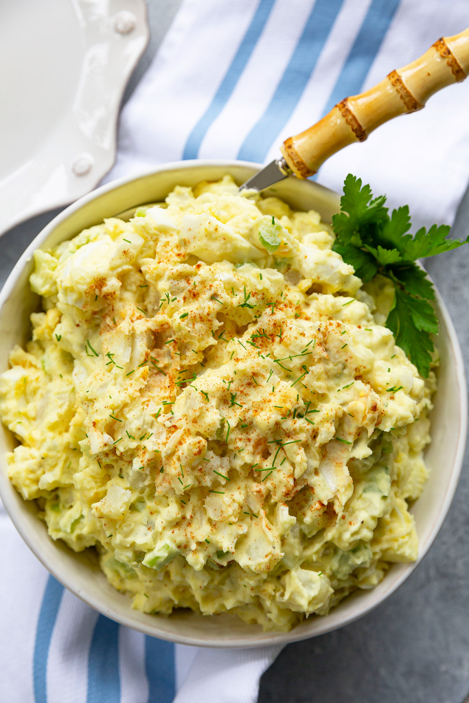 Potato salad is already a creamy dish, thanks to the mayonnaise and mustard dressing. Adding eggs—especially yolks—makes it even richer.